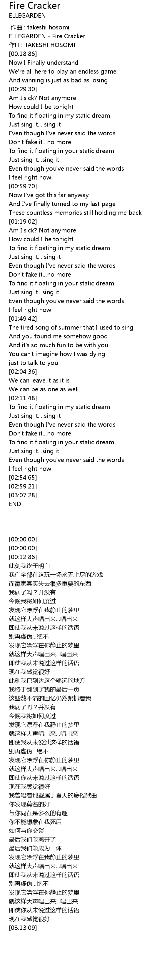 | [00:00.00] | ELLEGARDEN - Fire Cracker |