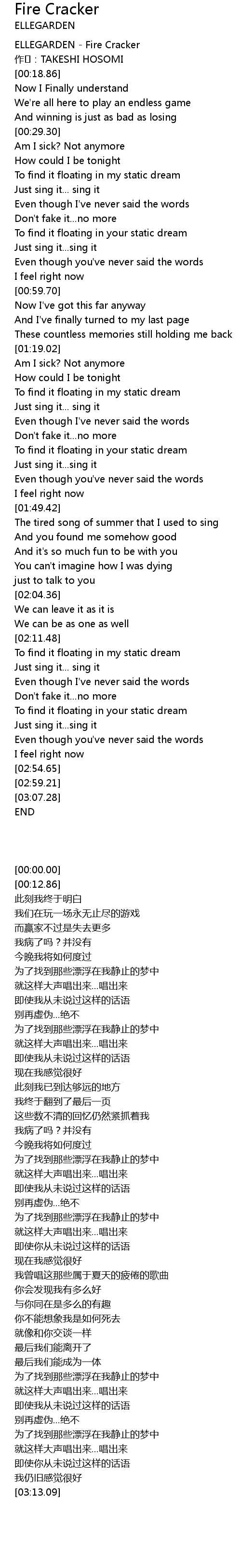 | [00:00.00] | ELLEGARDEN - Fire Cracker |