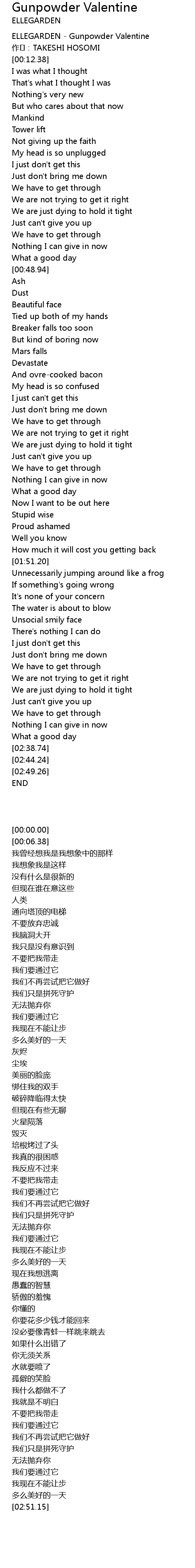 | [00:00.00] | ELLEGARDEN - Gunpowder Valentine |