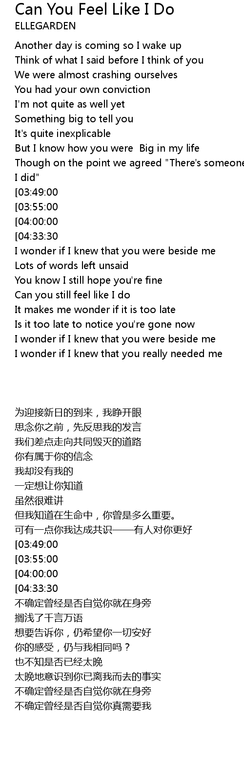 | [01:14:50][03:49:00][04:11:00] | Can you feel like I do |