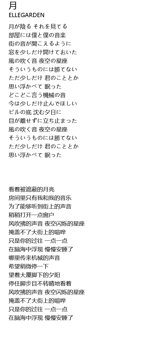 | [00:12.400] | 月が陰る それを見てる |