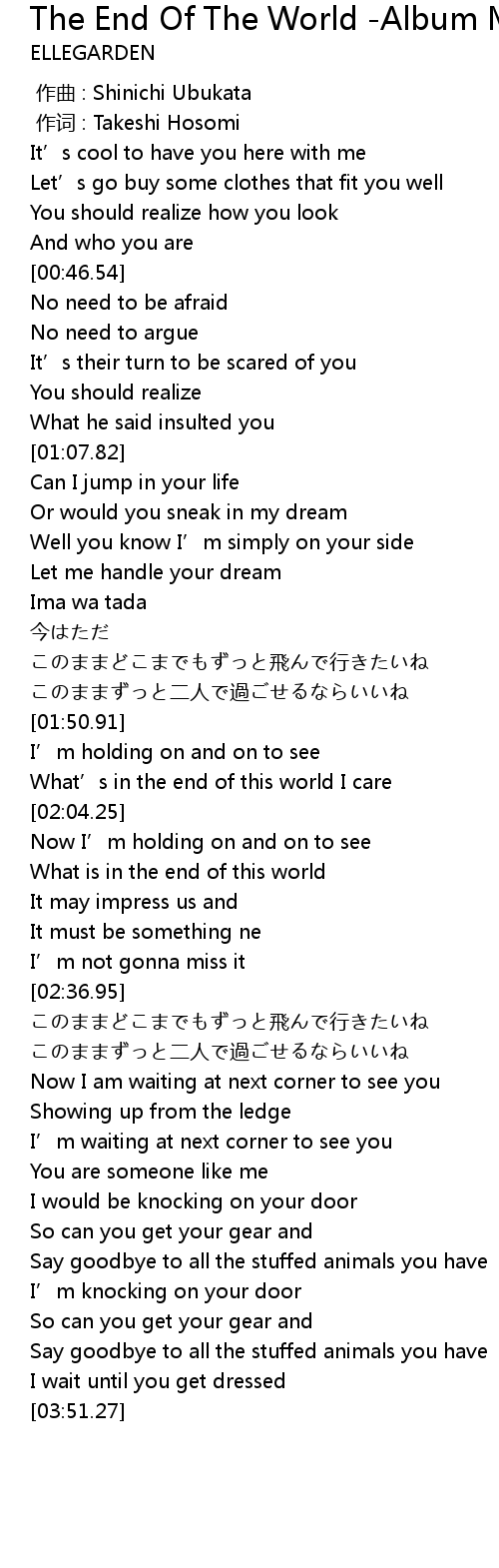 | [03:36.83] | Say goodbye to all the stuffed animals you have |