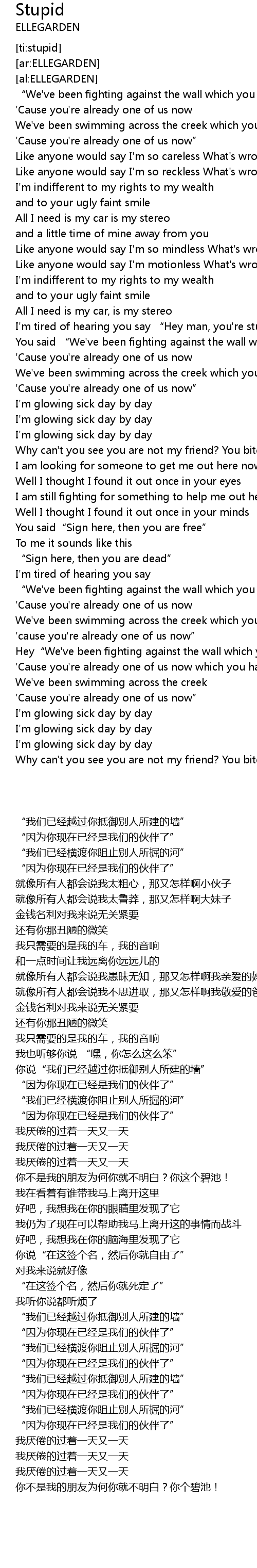 | [01:34.56] | I' m tired of hearing you say " Hey man, you' re stupid" |