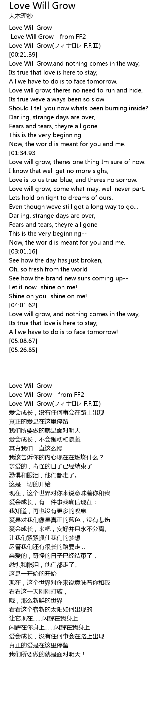 | [00:24.63] | Love Will Grow, and nothing comes in the way, |