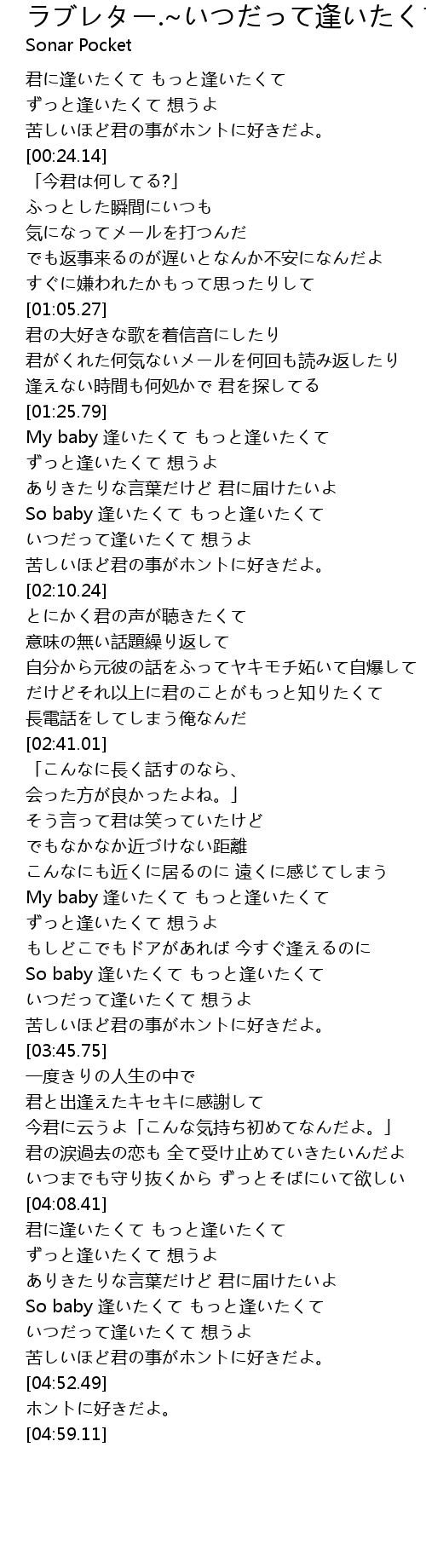 | [03:02.36] | My baby 逢いたくて もっと逢いたくて |