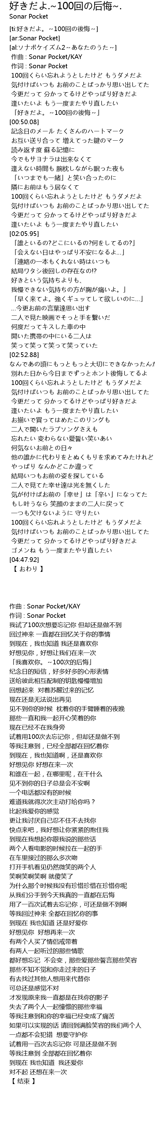 | [00:00.00] | 作曲 : Sonar Pocket/KAY |