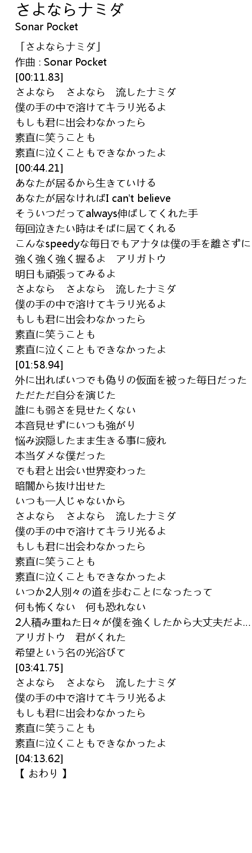 | [00:13.83] | さよなら さよなら 流したナミダ |