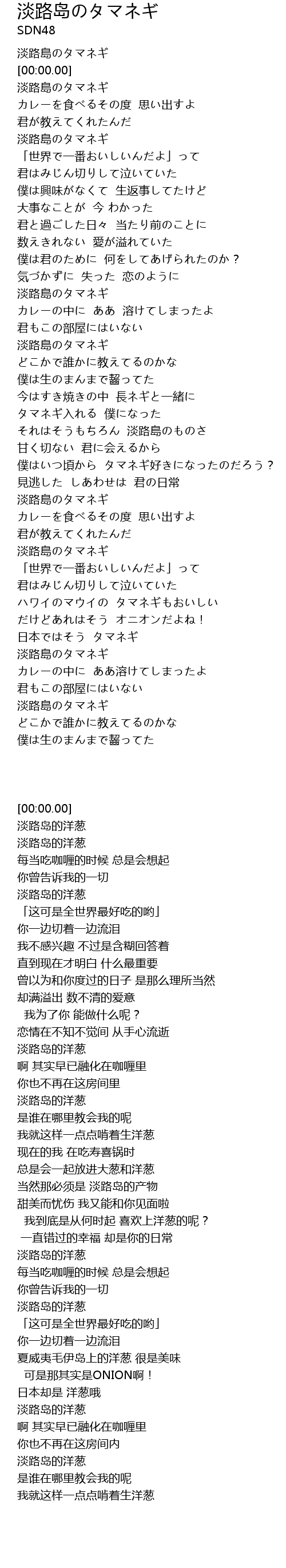 | [00:00.00] | 淡路島のタマネギ |
