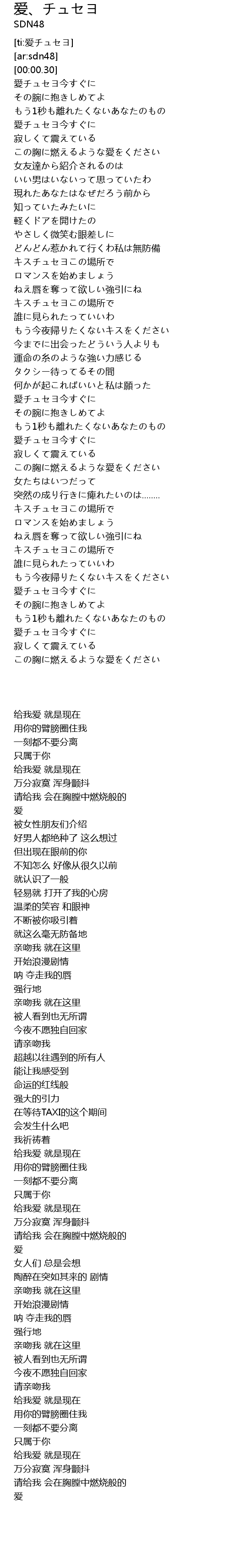 | [02:55.16] | 愛チュセヨ今すぐに |