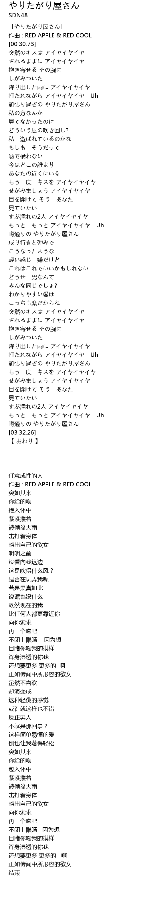 | [00:38.29] | されるままに アイヤイヤイヤ |