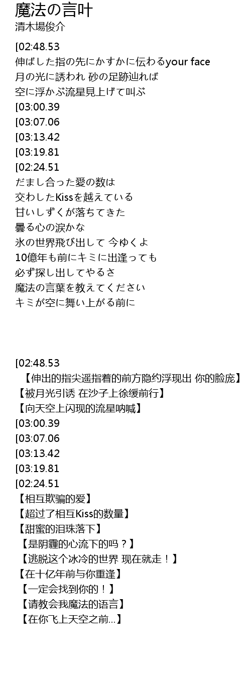 | [01:08.86][03:13.42] | 揺れる花ビラに唇合わせば |