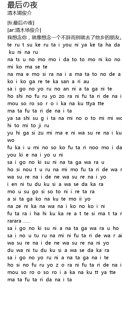 | [04:35.17] | sa i go no ki su ni a na ta ga wa ra u ho |