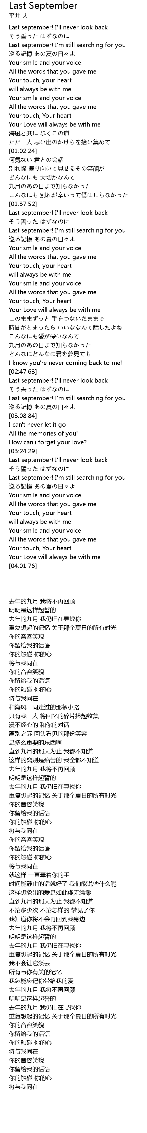 | [02:57.65] | Last september! I'm still searching for you |