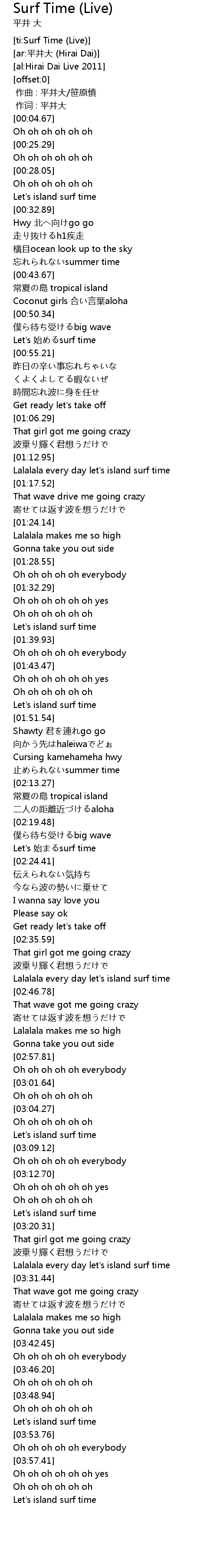 | [02:42.71] | Lalalala every day let' s island surf time |