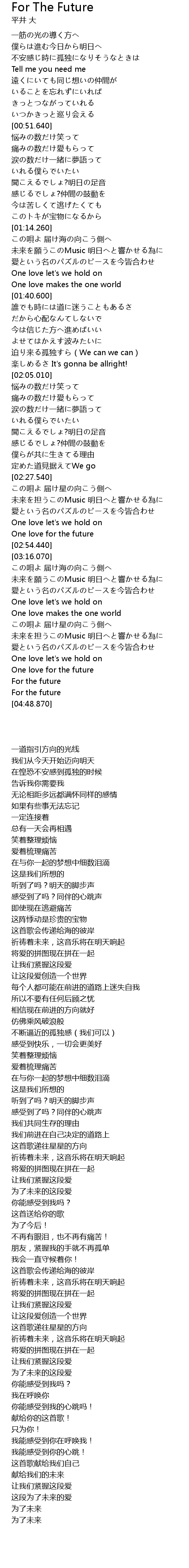 | [02:47.650] | One love for the future |