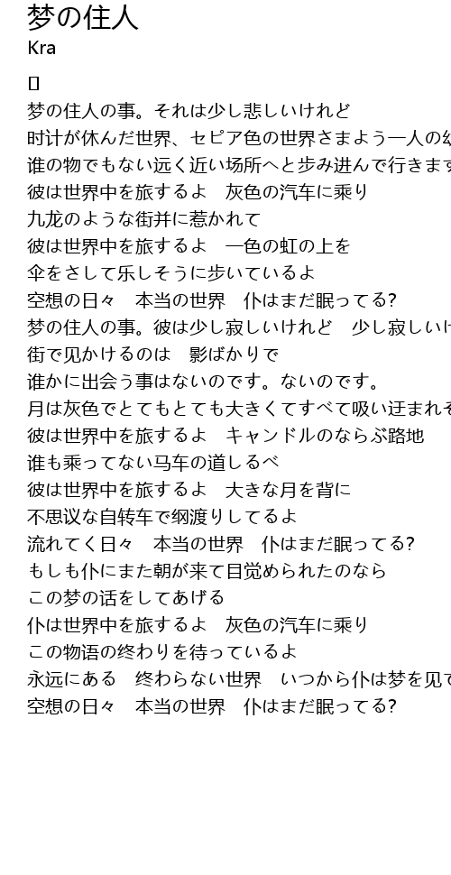 | 梦の住人の事。彼は少し寂しいけれど 少し寂しいけれど | |