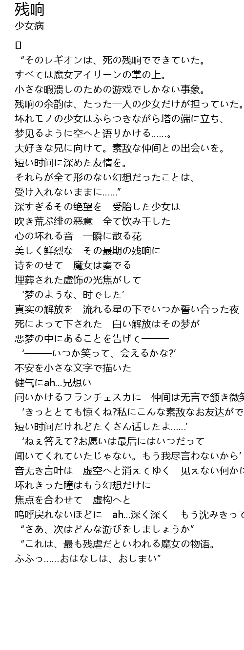 | 残响の余韵は、たった一人の少女だけが担っていた。 | |
