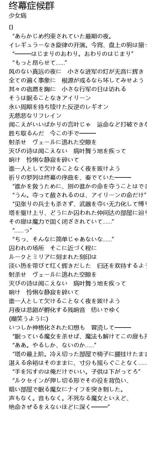 | 灭びの诗は闻こえない 病叶舞う地を疾って | |