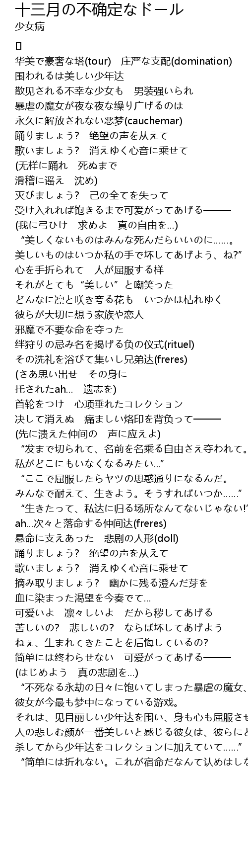 | Song | 十三月の不确定なドール |