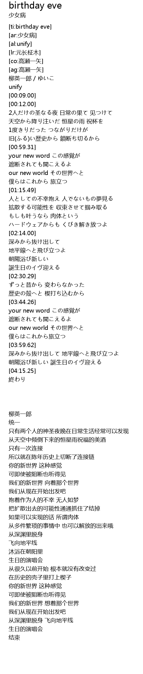 | [02:25.84] | 誕生日のイヴ迎える |