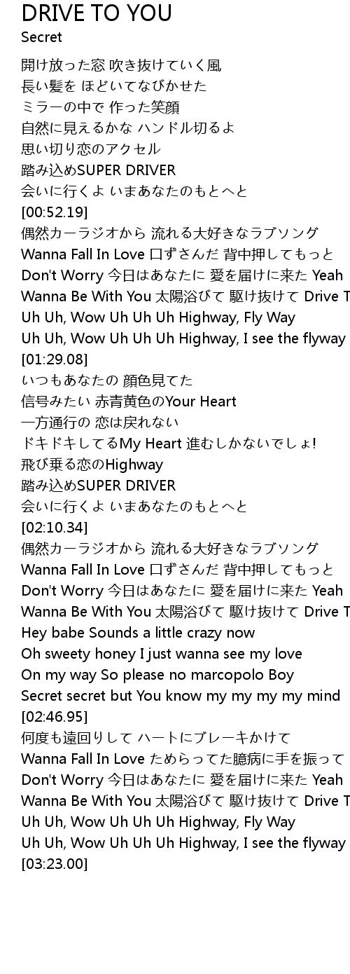 | [02:29.53] | Wanna Be With You 太陽浴びて 駆け抜けて Drive To You |