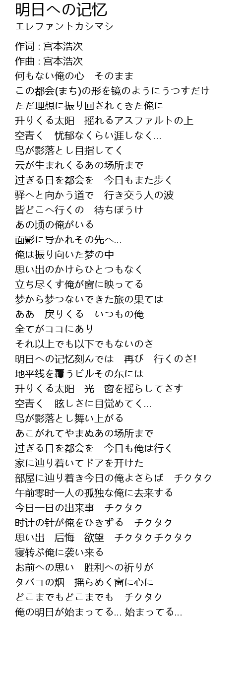| 明日への记忆刻んでは 再び 行くのさ! | |