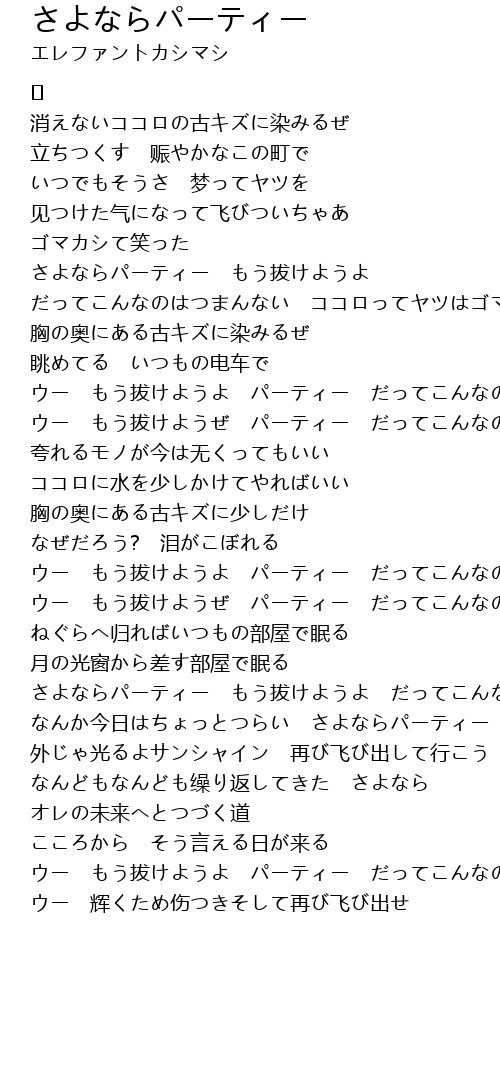 | なんか今日はちょっとつらい さよならパーティー もう拔けようよ | |