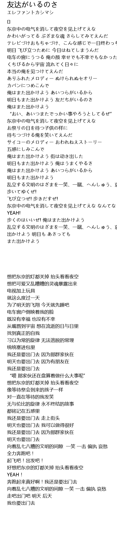 | Song | 友达がいるのさ |