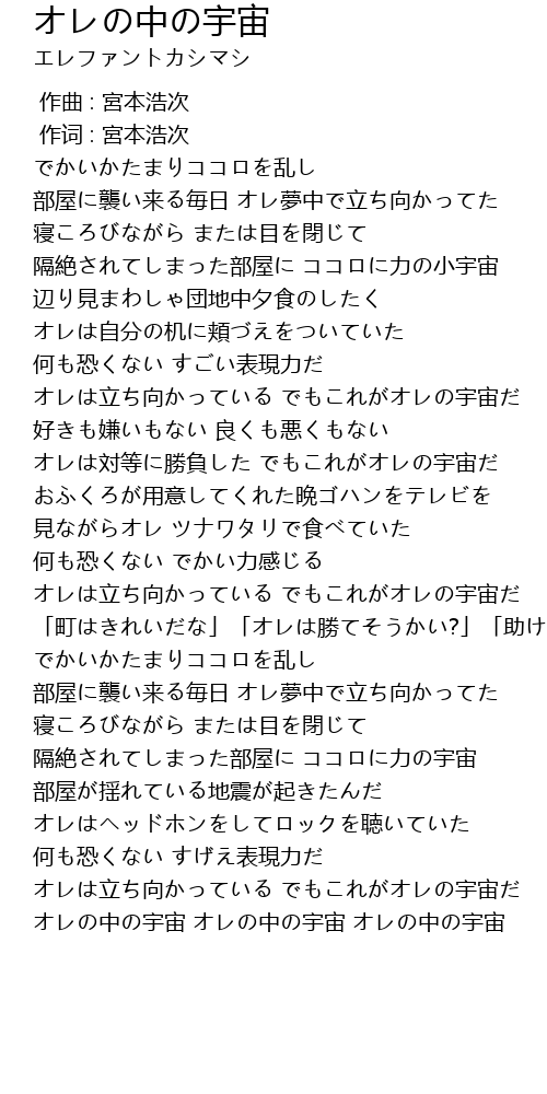 | [03:21.45] | オレの中の宇宙 オレの中の宇宙 オレの中の宇宙 |