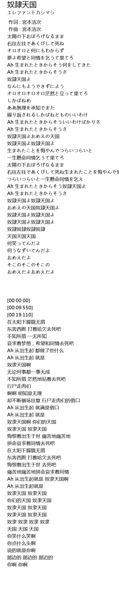 | [03:20.11] | 奴隷天国よ奴隷天国よ |