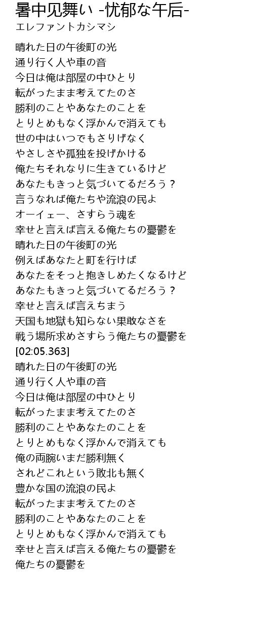 | [02:33.804] | 晴れた日の午後町の光 |