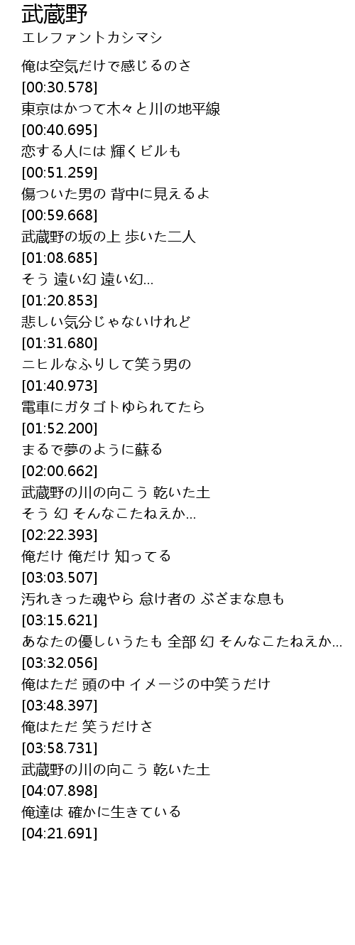 | [03:58.964] | 武蔵野の川の向こう 乾いた土 |