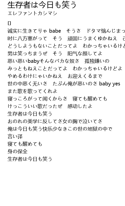 | Song | 生存者は今日も笑う |