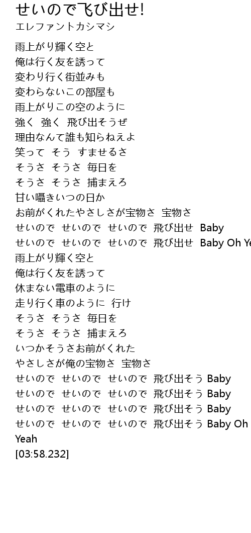 | [03:27.116] | せいので せいので せいので 飛び出そう Baby |