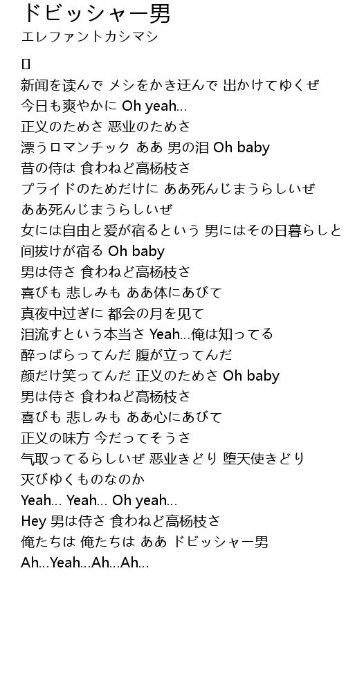 | 颜だけ笑ってんだ 正义のためさ Oh baby | |