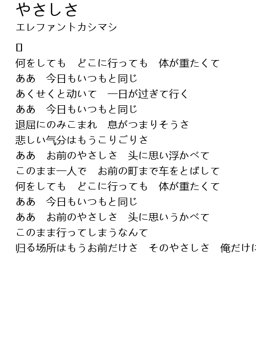 归る场所はもうお前だけさ そのやさしさ 俺だけに |