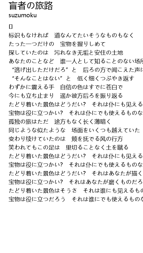 | 孤独の旅はただ 途方もなく长く薄暗く | |