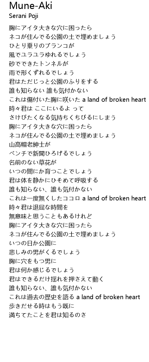 | [00:58.45] | これは傷付いた胸に咲いた a land of broken heart |
