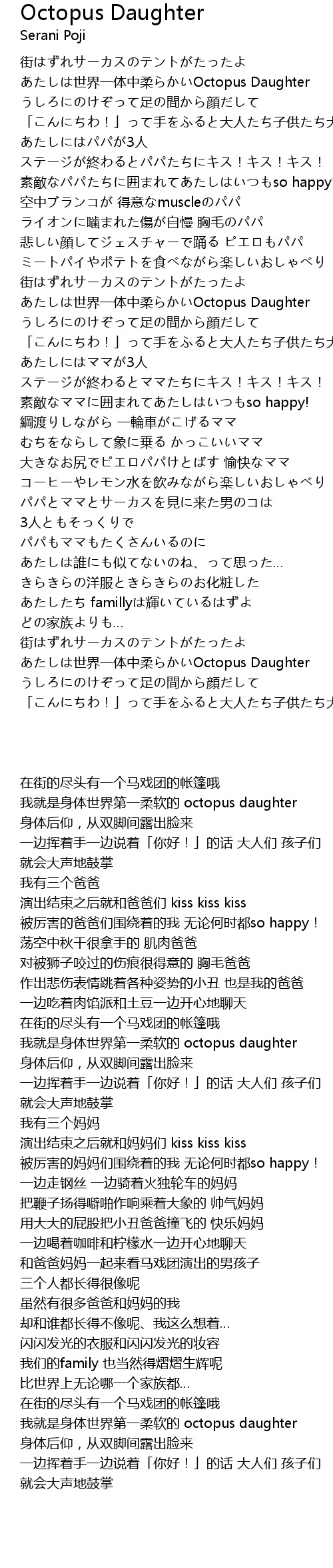 | [00:29.04] | あたしは世界一体中柔らかいOctopus Daughter |