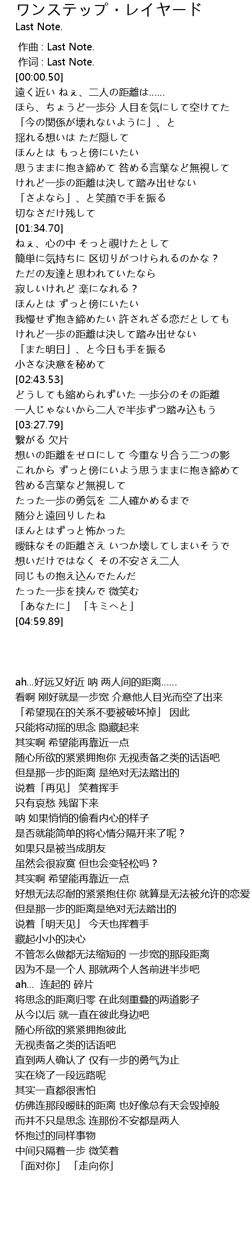| [00:39.33] | ほら、ちょうど一歩分 人目を気にして空けてた |