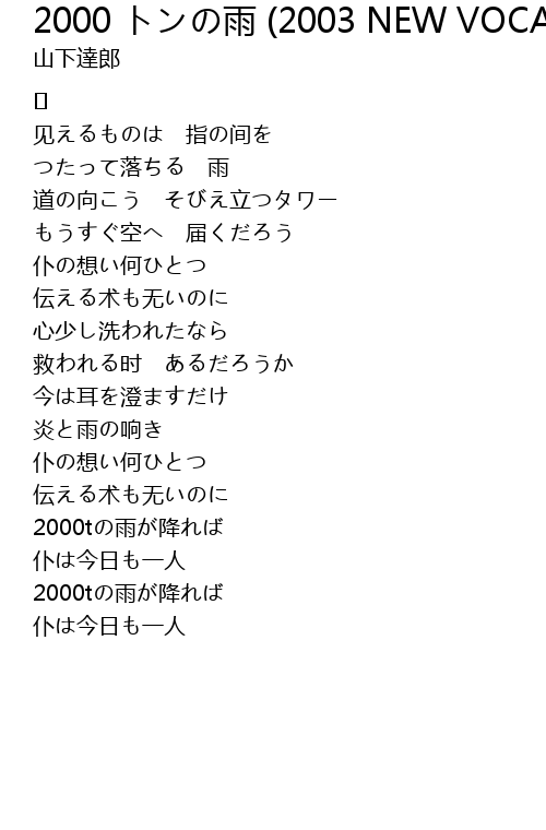 | Song | 2000 トンの雨 (2003 NEW VOCAL REMIX) |