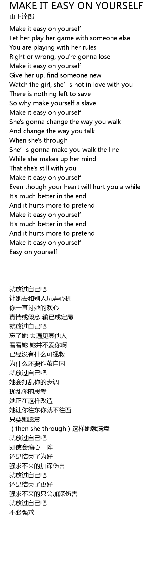 | [00:39.275] | Watch the girl, she’s not in love with you |