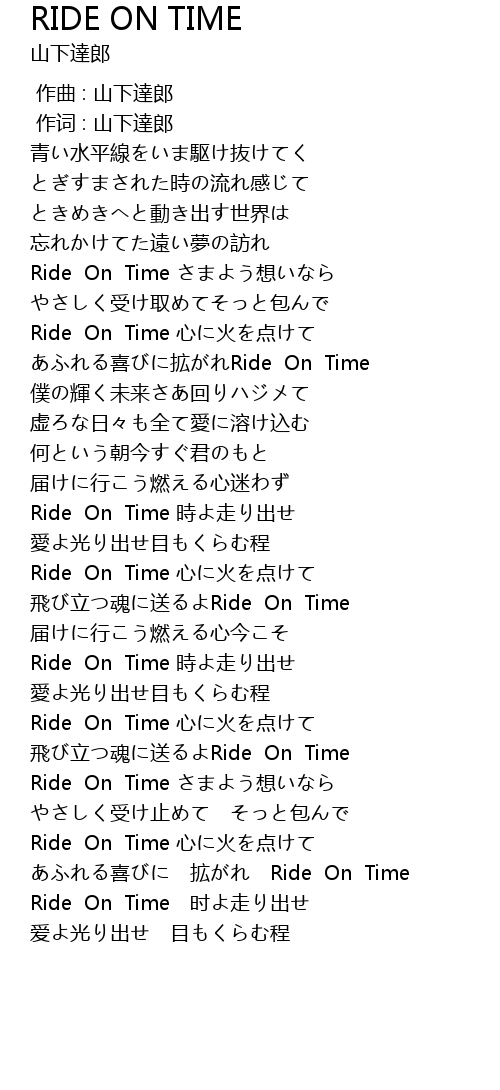 | [02:56.974] | Ride On Time 時よ走り出せ |