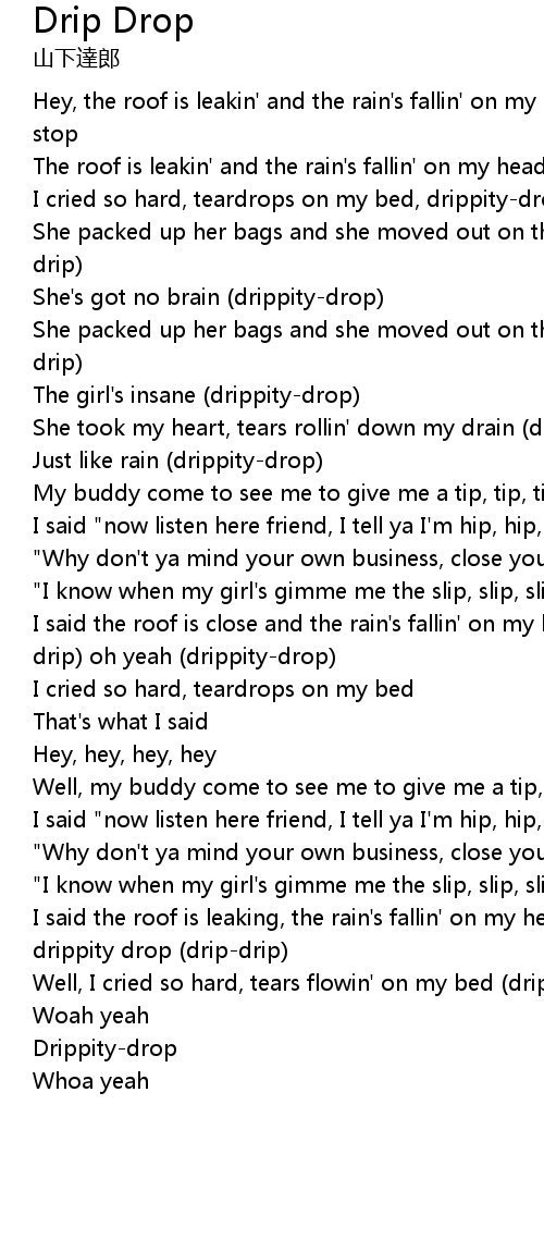 I said the roof is close and the rain's fallin' on my head, (drip drip) oh yeah (drippity-drop) |