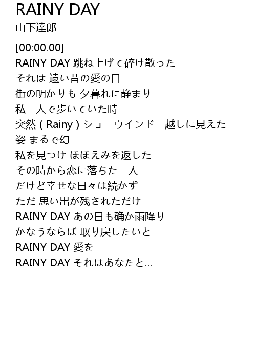 | [03:11.37] | RAINY DAY あの日も确か雨降り |
