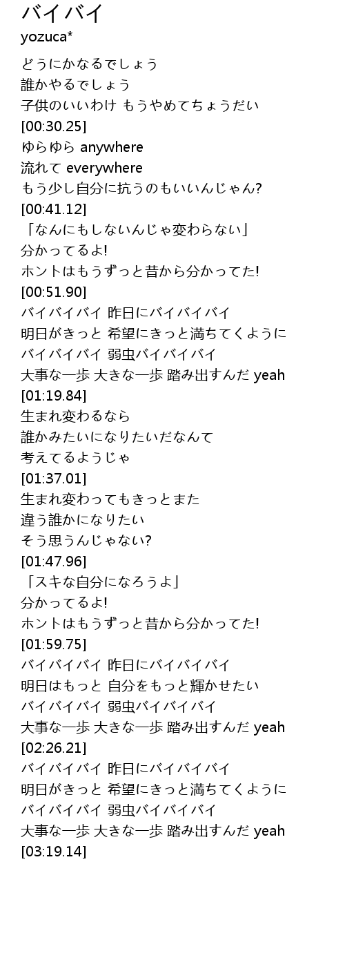 | [02:01.54] | バイバイバイ 昨日にバイバイバイ |