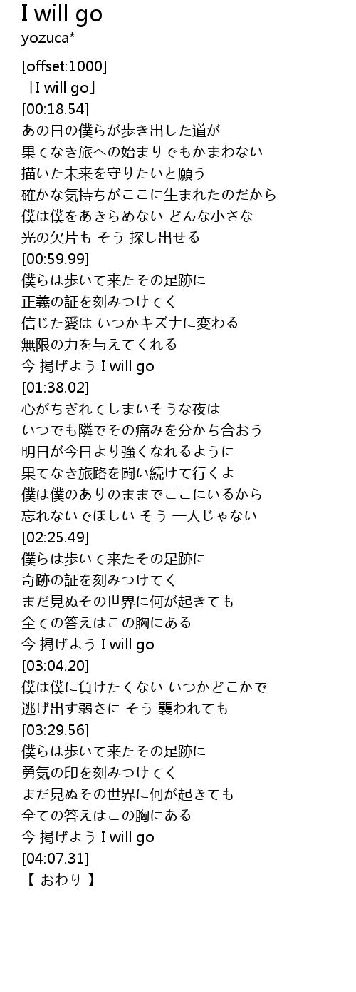 今 掲げよう I will go |