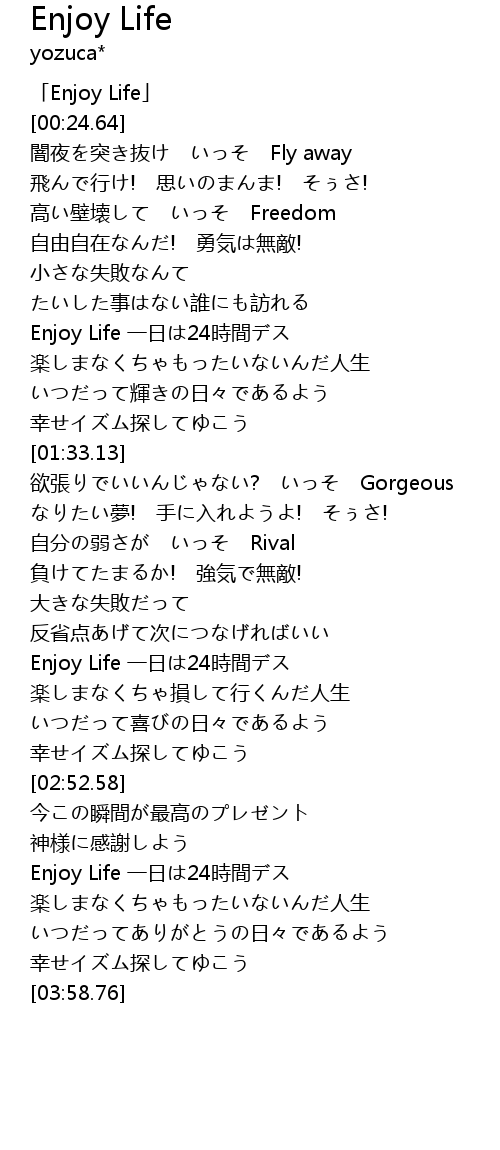 | [03:31.41] | Enjoy Life yi ri 24 shi jian |
