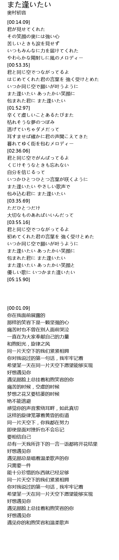 | [03:20.04] | また逢いたい やさしい歌声で |