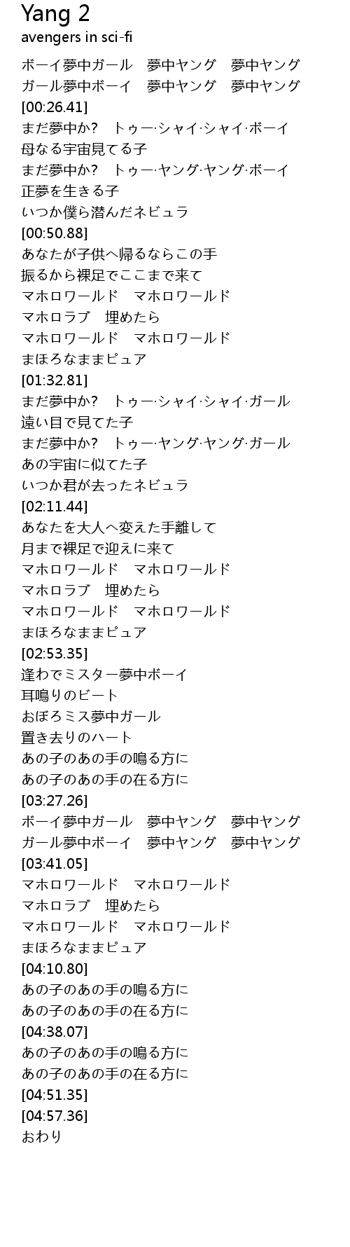 | [03:35.20] | ガール夢中ボーイ 夢中ヤング 夢中ヤング |
